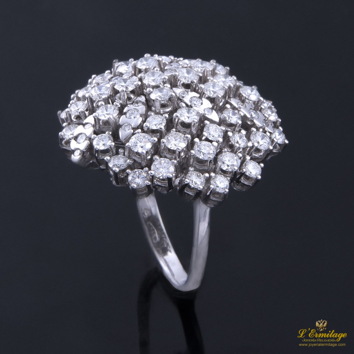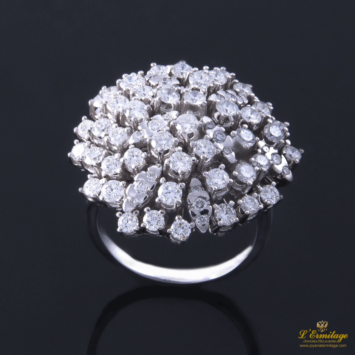 SORTIJA DE ORO BLANCO CON 69 DIAMANTES NATURALES TALLA BRILLANTE ENGASTADOS EN GARRAS.